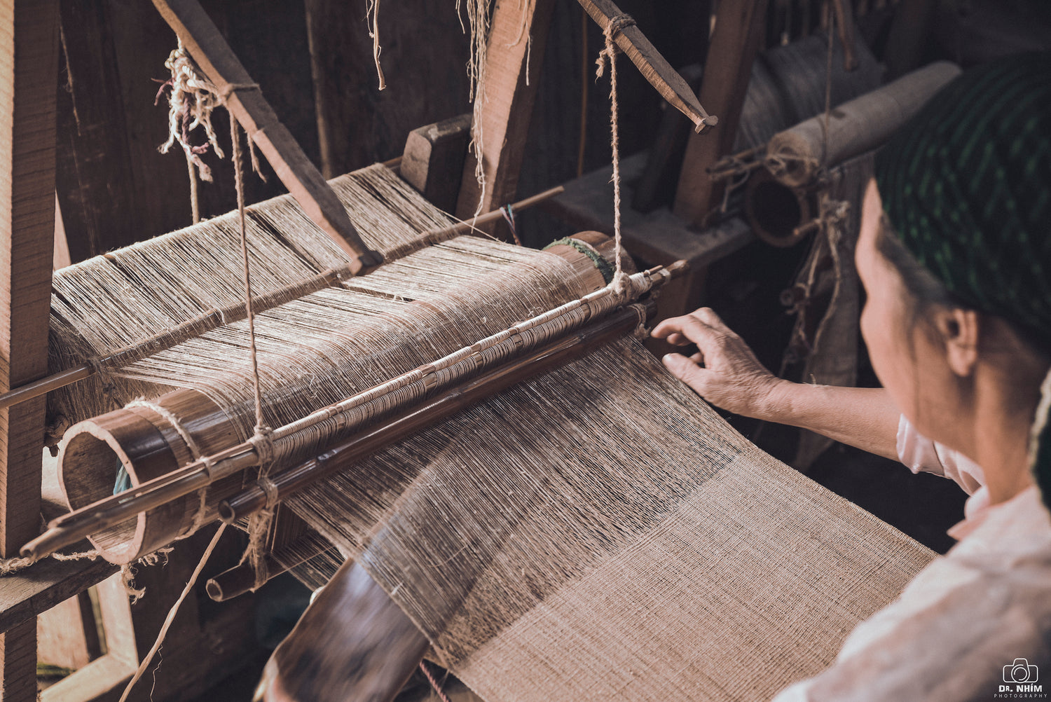 Handwoven hemp fabric, BROWN dyeing yam, H'mong sun pattern