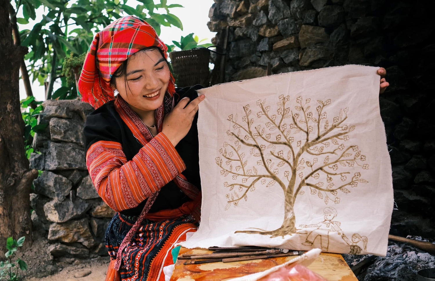Handcrafted H'mong Batik Fabric – Organic Indigo and Beeswax Patterns in Cotton